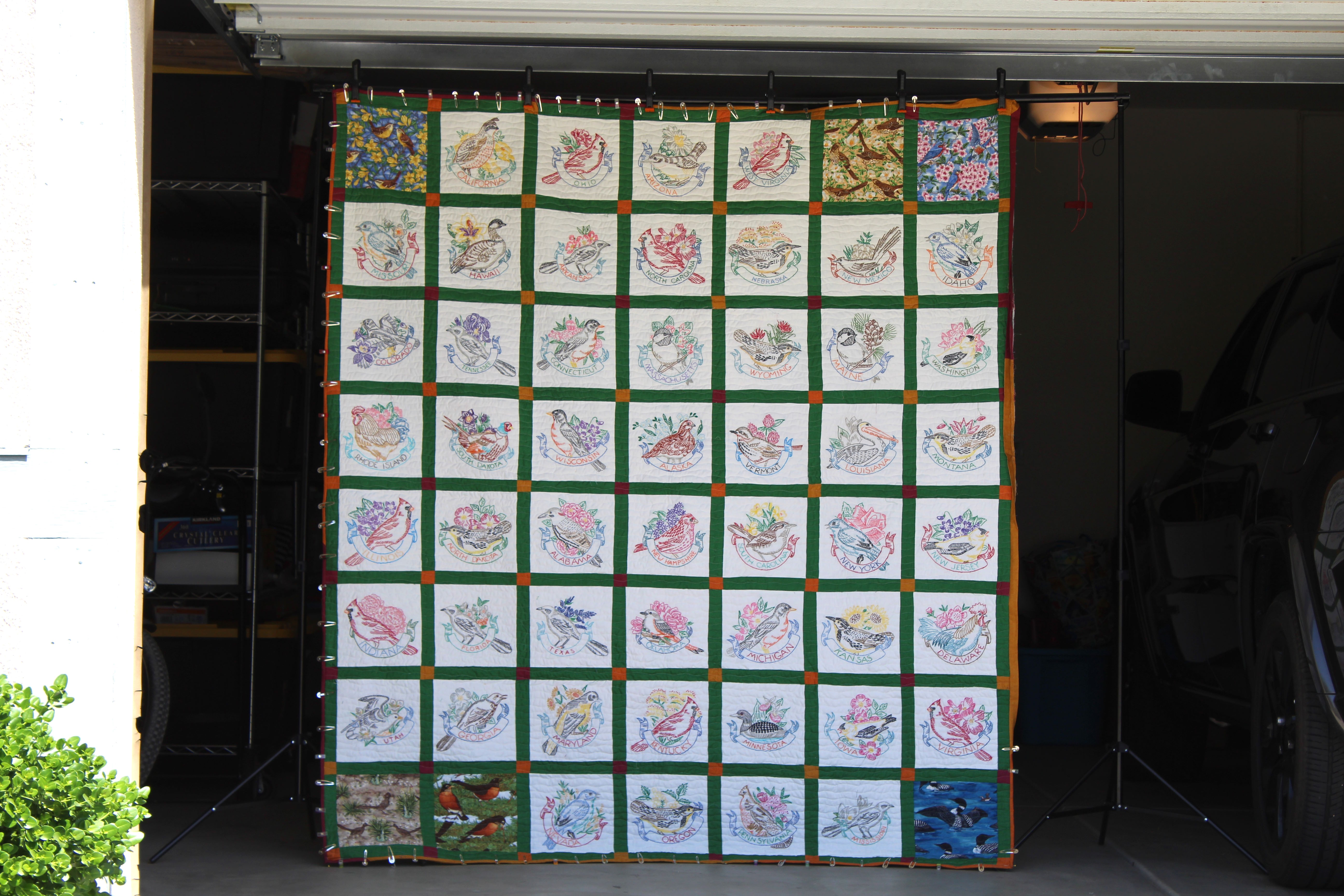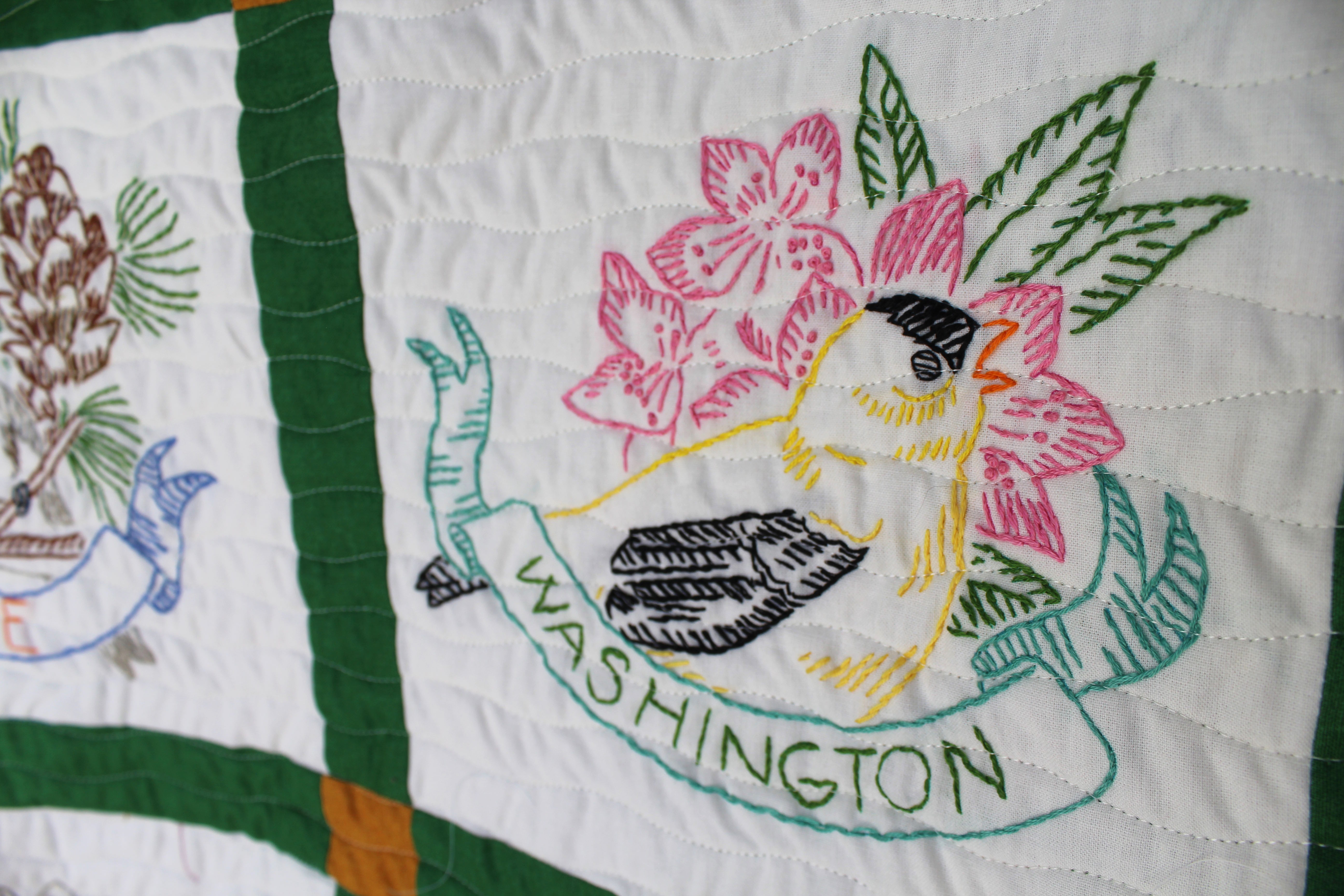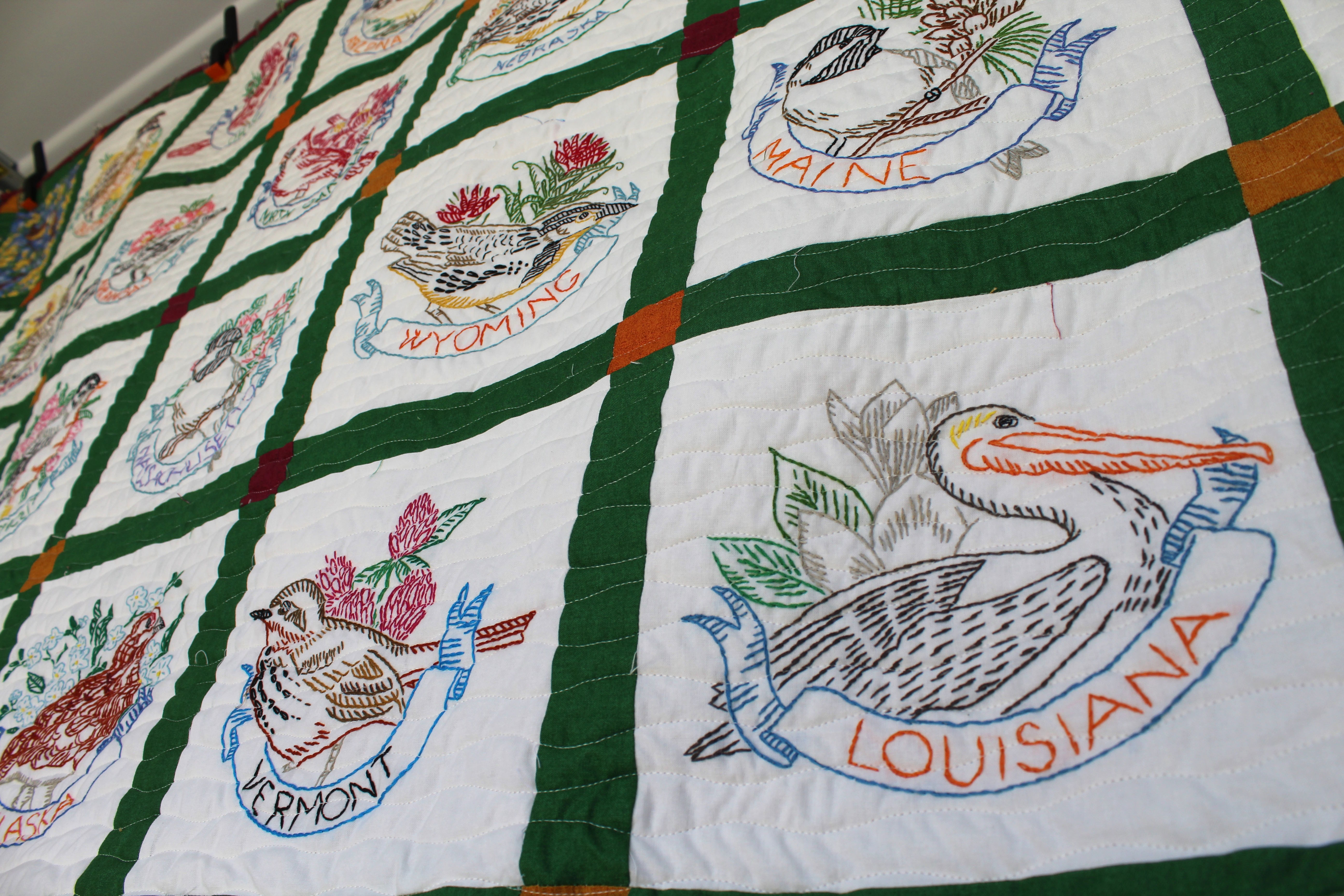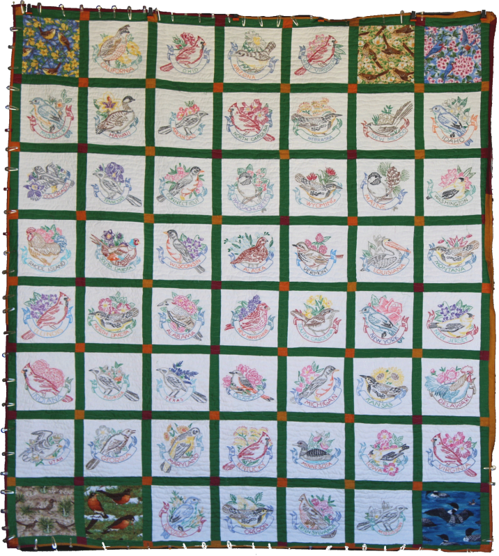 State Birds 0 May 5, 2023May 25, 2023 Written by Alex Bruell 73″ by 83″ I hand embroidered a square for each states bird and flower. Quilted by Hester Mastro. Like Loading...