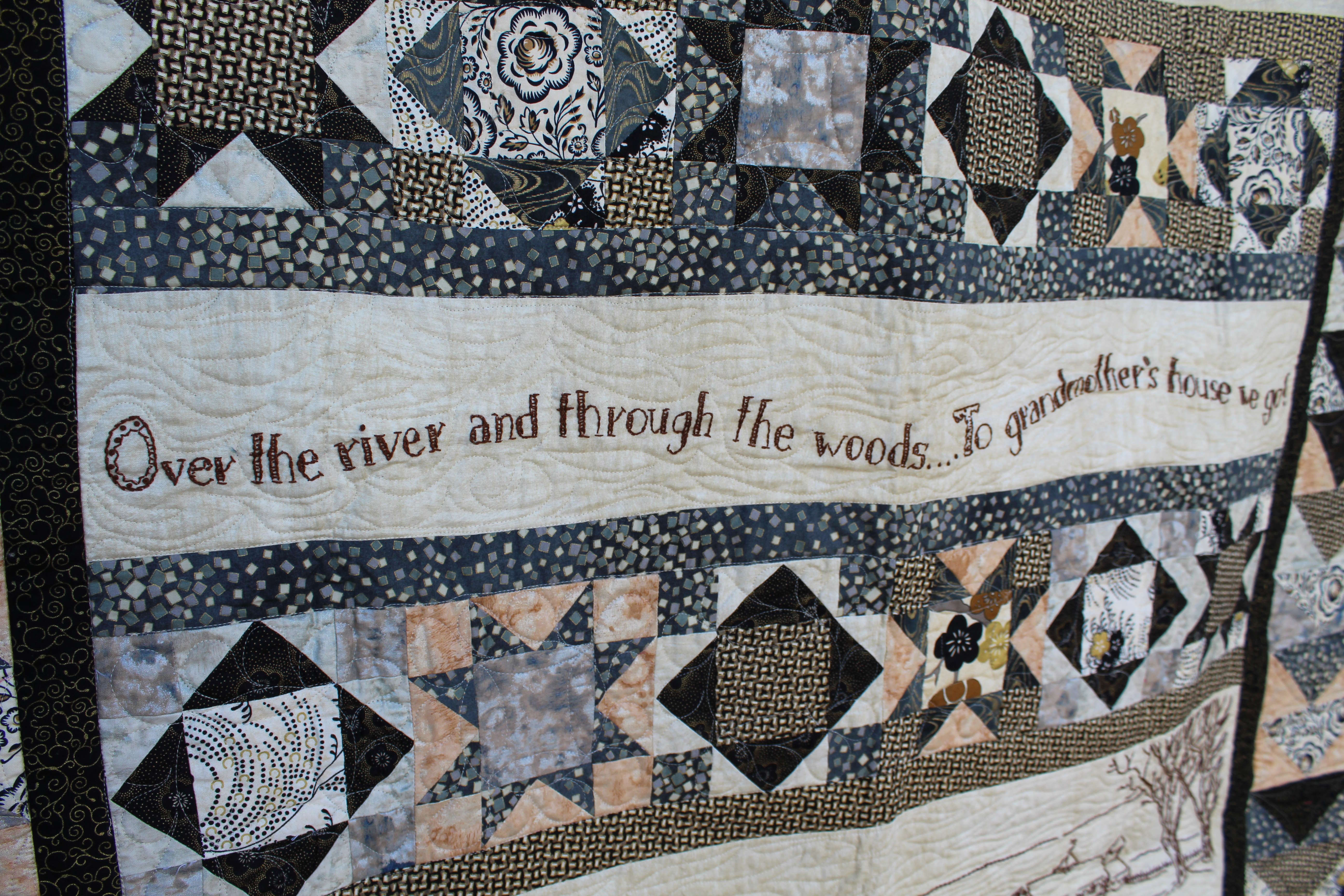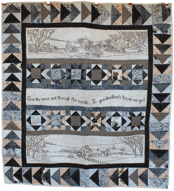 1. I love the combination of color pallet and movement in this work. The colors capture the dormancy of winter, while the flow of the embroidery and quilting bring out the thrill and anticipation of the season. Wonderful artistry and skill!